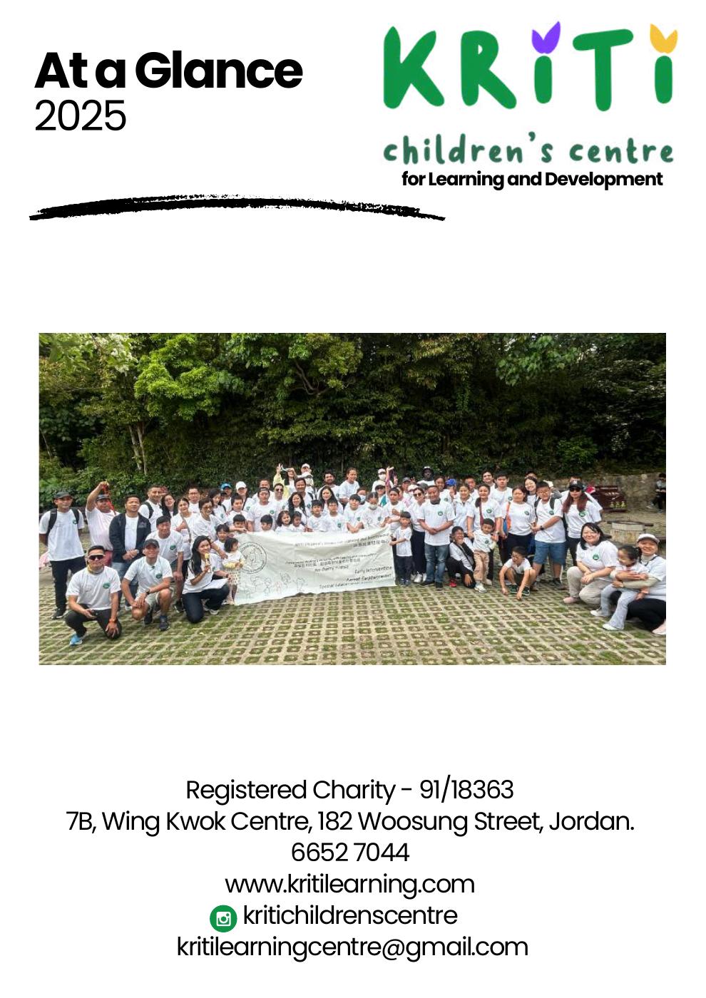 Kriti 一詞源自拉丁文和梵文,意指從無到有的創造。2022年,「KCC」正式註冊成為慈善機構,至今已服務超過250 家庭。目前,中心服務40名一歲及以上兒童,其中約30%屬確診或疑似SEN,並設有由100個育有SEN兒童家庭組成的支援網絡。